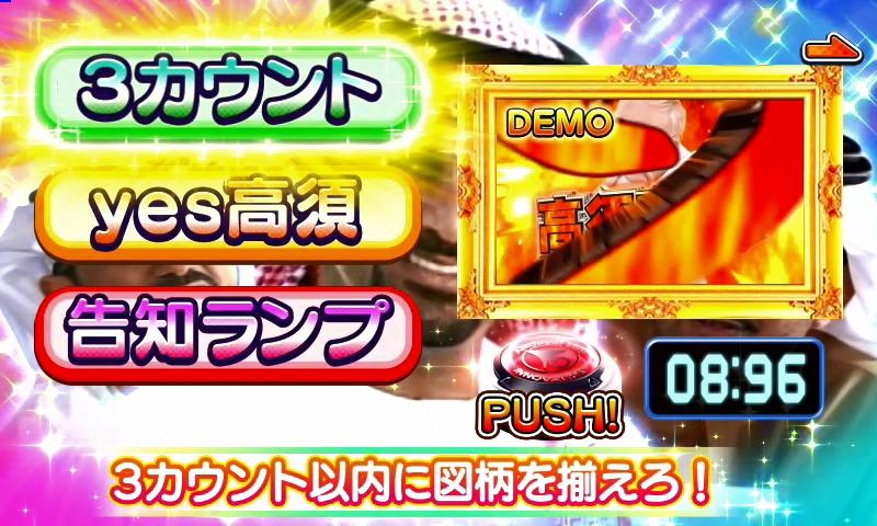 当たりが最短3秒で決着する「TAKA須RUSH」中のモードは3種類。3カウント以内に当たりを目指す「3カウント」、ボタン押下で当たりを告知する「yes高須」、液晶下のランプが光れば当たりの「告知ランプ」の3モードから任意で選択できる。