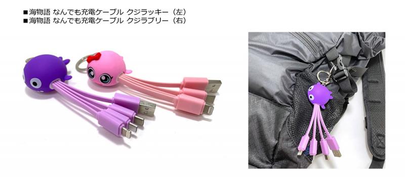 『海物語 なんでも充電ケーブル』も入荷した。デザインはクジラッキーとクジラブリーの全2種。3種類の充電端子に対応しているため、機種を選ばずに充電可能だ。