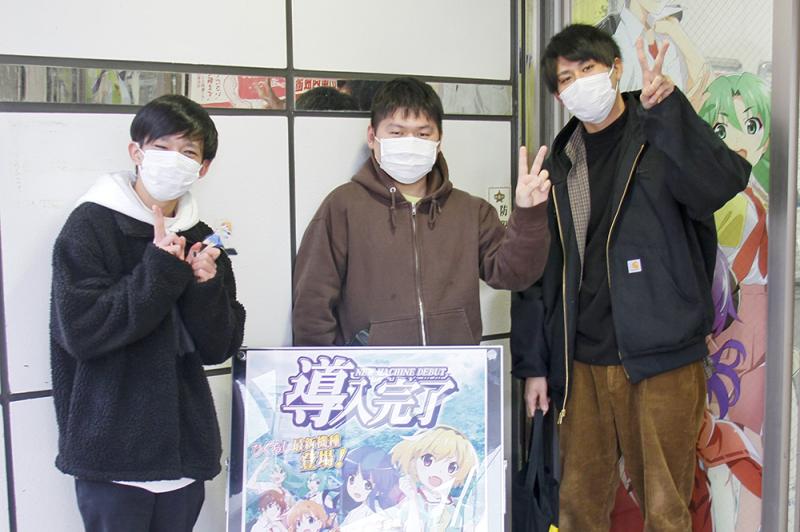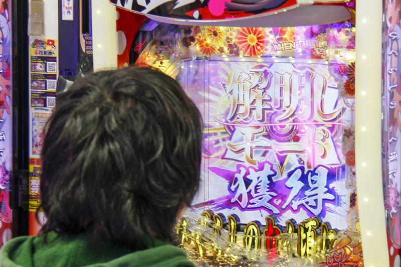 友人3人で開店から『Pひぐらしのなく頃に~彩~』を堪能した20代男性に感想を聞いてみた。「もともとアニメのファンで、アニメを見てから『ひぐらし』のパチンコを打つようになりました。アニメが終わって1年も経っていないのに、『業』の演出が見れて嬉しかったです。以前はパチスロを打っていましたが、最近はバトル系のパチンコばかり。今月で5号機も撤去されるので、『解明しモード』のエンディングを見るまで打ち続けたいと思います(笑)」
