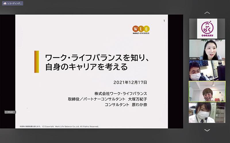 ダイナムは12月17日、Zoomを使用した社内研修「キャリアサポート研修」を実施した。受講者は講義とディスカッションを通してワーク・ライフバランス(WLB)について理解し、仕事と子育ての両立、プライベートを充実させるための行動や知識を学んだ。