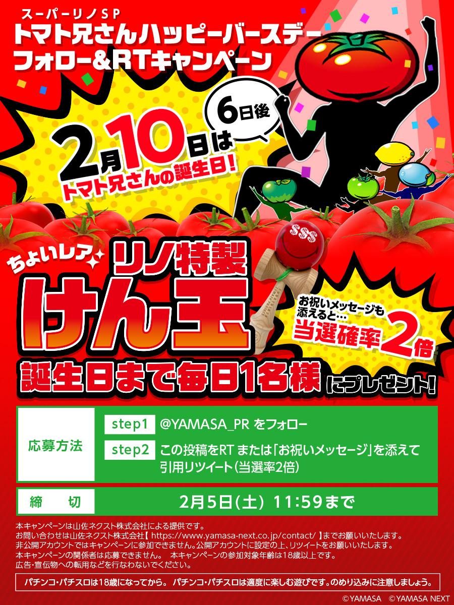 山佐グループは2月4日、『スーパーリノSP』に登場するキャラクター・トマト兄さんの誕生日を記念してキャンペーンを開始した。