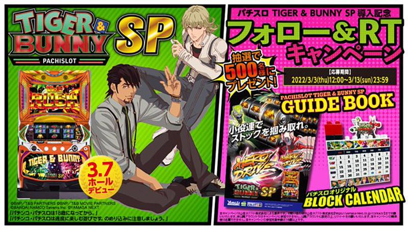山佐グループは3月3日正午から、Twitterで新機種『パチスロ TIGER & BUNNY SP』のフォロー&RTキャンペーンを開始した。