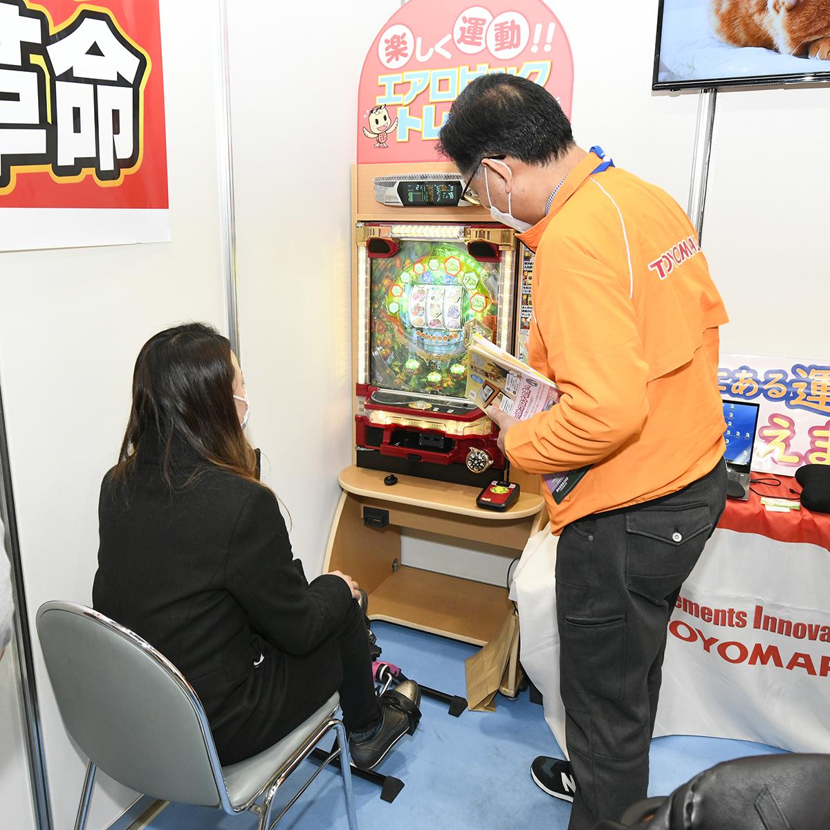 豊丸産業は、東京ビッグサイトで3月9日から11日に開催された「東京ケアウィーク'22」に出展。福祉向けに開発した『エアロビック・トレパチ!』と『元気はつらつトレパチ!テーブル』を展示した。