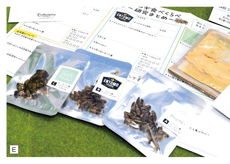 昆虫食のentomo(大阪府)は、昆虫食の輸入・販売・製造を通し、SDGsの啓蒙活動を行っている。古代から食べられてきた昆虫は高タンパクで、現代では糖質制限が必要な人にも推奨される健康食だ。同社製品では高タンパクで低脂肪、食物繊維が豊富な「いもむしゴロゴロカレー」が人気。「いもむしにはちょっと抵抗がある」という昆虫食入門者には、カリッとした食感でおつまみにもぴったりな「乾しコオロギ」(写真E)や、筋肉をつけるプロテイン剤として「クリケットパウダー」がお勧めだ。