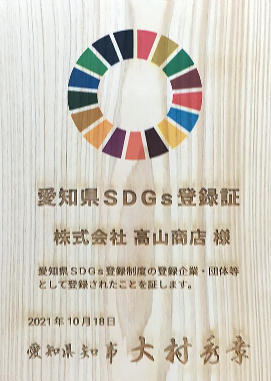 愛知県SDGs登録制度に申請し登録証を交付されたほか、今年は、テレビ愛知の番組「未来へつなぐ、豊かな自然」「24時間こどもSOSダイヤル」のスポンサーとしてSDGsの啓蒙活動にも協賛している。