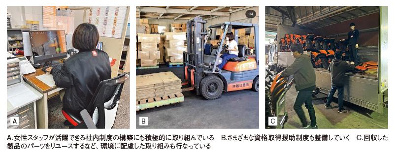 〈具体的な取り組み〉体への負担を最小限に和らげる素材・製品の開発。お客様からの要望を社内で共有し、試製品の改良・進化を追求。多種多様な人材の採用によるアイデアの融合。IS O取得に向けた取り組み。[SDGs 3・9・11・17]