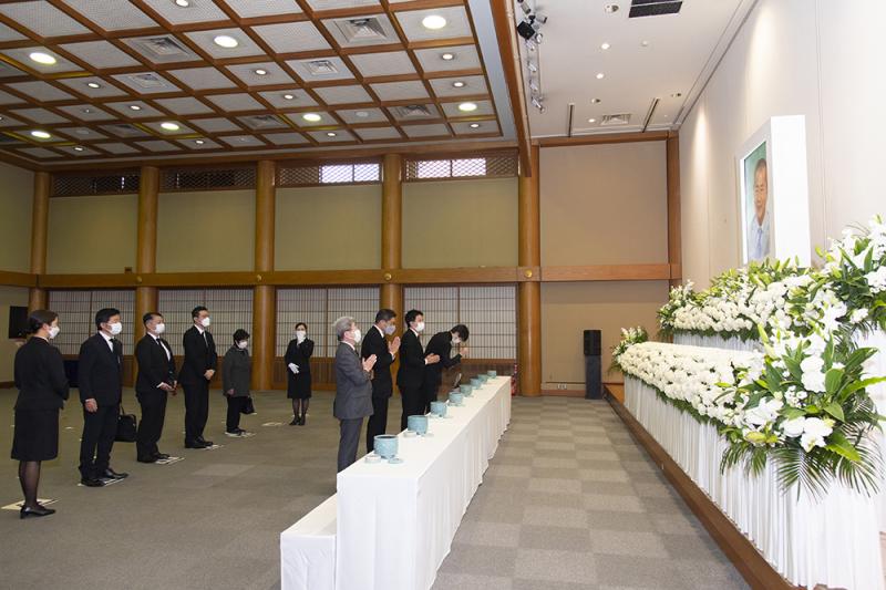 午前10時から行われた築地本願寺による読経には、ピーアークホールディングスの庄司眞代表取締役社長と日遊協の西村拓郎会長ほか親族2人のみが参列。第一部と第二部に分かれて行われた焼香には、業界関係者など約360人が参会した。