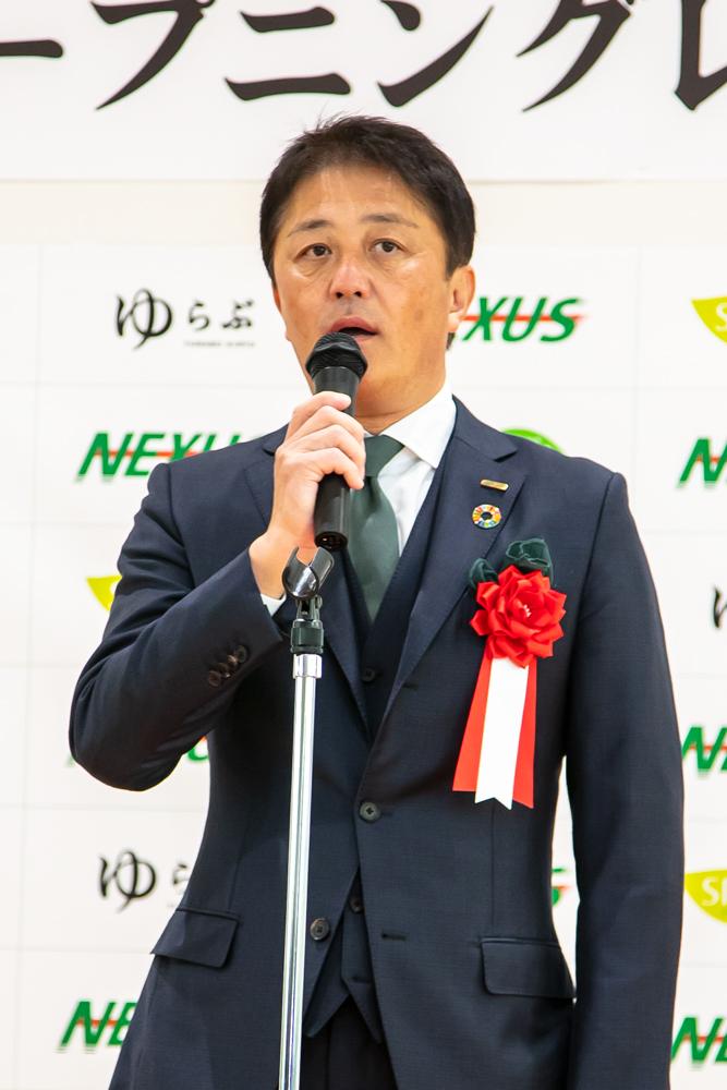来賓として招かれた荒木恵司桐生市長は「桐生の産品販売エリアを設け、地域の産業振興に対し多大な貢献をしていただき感謝している。この施設が桐生市民のみならず、多くの人の癒しの場になることを願う」と祝辞を述べた。