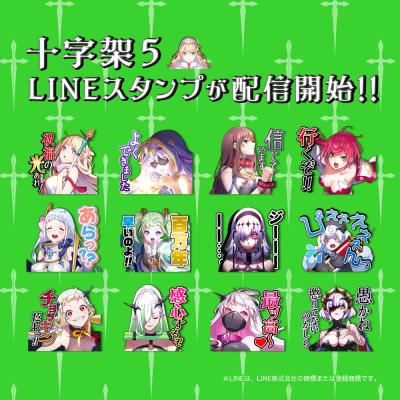 本製品は、日常会話で使いやすいスタンプや、『十字架5』の独特な雰囲気を味わえるスタンプなど40種を収録。120円(税込み)またはLINEコイン50枚で購入できる。