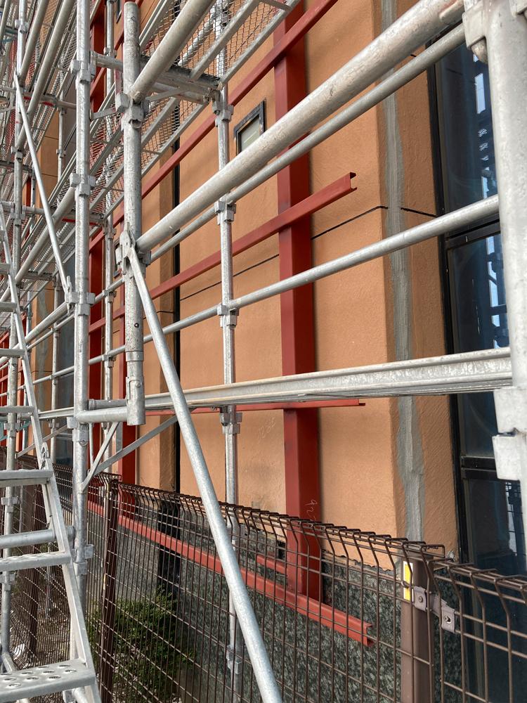 「ダイエー安積店」の外壁には度重なる地震や経年劣化ではいったクラックに加え、一部の壁材は落下しているような状態だった。部分的な外壁補修工事を繰り返して、来店客の安全の確保に努めてきたが今年2月、外装の全面リニューアル工事を行った。