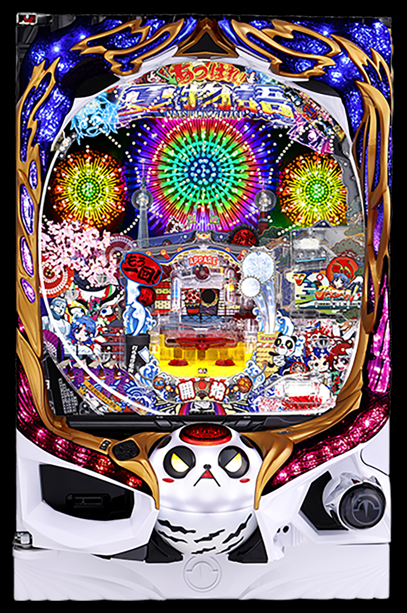 本機は、オリジナルキャラクター「たまや姉妹(たま&まや)」が登場する役物機。「レインボー花火が打ち上がれば大当たり」というシンプルなゲーム性だ。大当たり確率は、役物機としては軽めの約1/27.3。振り分けは特図1・特図2ともにオール1400個、5セット消化で7000個を獲得できる。