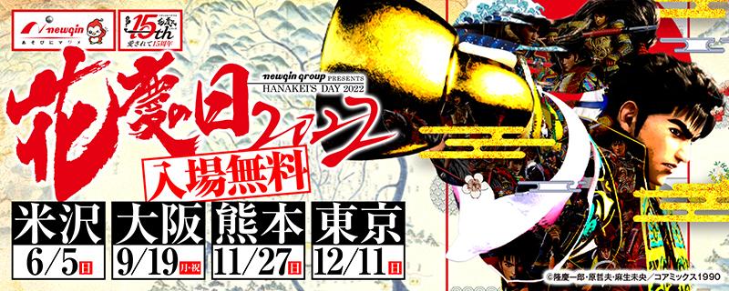 「花慶の日2022」はその後、8月7日のオンライン開催をはさみ、大阪(9月)、熊本(11月)、東京(12月)と、「花の慶次」に縁が深い4会場でオンラインを併用して開催される。詳細は下記の通り。