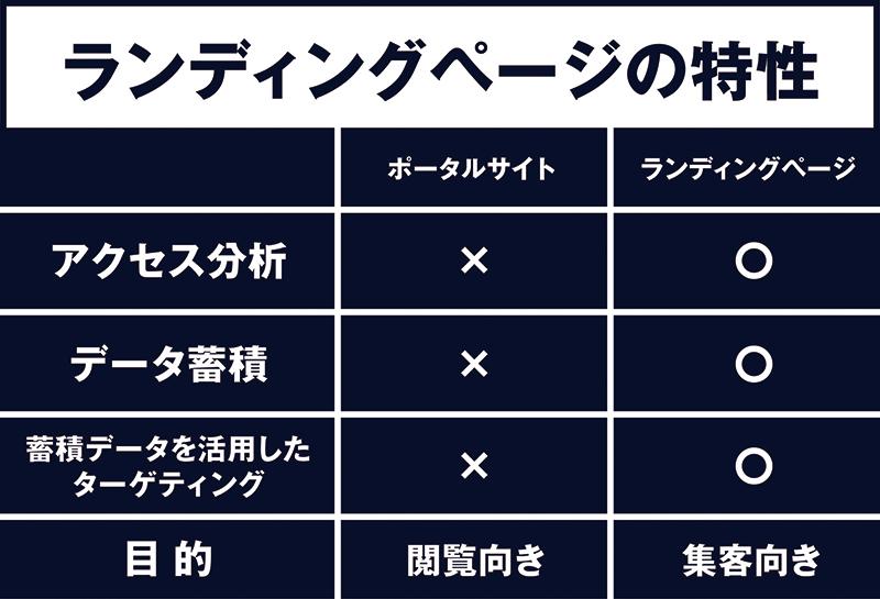 そして、「集客を目的とした情報伝達」という面においてもポータルサイトよりランディングページの方が優位性の高いサイトであると考えられます。