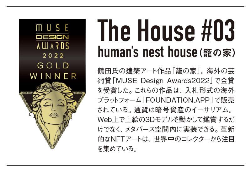 鶴田 暗号資産の技術を応用したNF Tが発達したことで、仮想空間でも経済活動が安定的に行えるようになったためです。デジタルコンテンツは複製や改ざんが容易で、唯一性や真贋に疑義がありました。しかし識別情報を付与して代替不可能なものにすれば、固有の価値や所有権を立証できます。NFTが新しい産業を生んだと言っても過言ではありません。NFTはさまざまな既存分野にも影響を与えるでしょう。例えばこれまで登記することで所有権を生じさせてきた不動産も、NFTを利用すればもっと簡便になります。人口に対する日本の暗号資産保有率は1・6%。口座数はざっと200 万件でしょうか。この割合は全世界で70位です。暗号資産でこの程度ですから、メタバースでNFT取引する人はもっと少ない。ましてやメタバース建築家として活動するアーティストはさらに少数で、世界的に見ても稀な存在です。