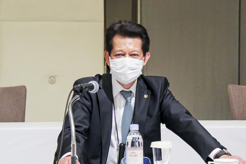 スマスロの供給台数などの見通しについて兼次理事長は、電子部品の逼迫でユニットの供給量が流動的とした上で、「本年11月から来年3月ごろまでに10万台以上15万台未満という範囲でユニットが供給される状況なので、初期のスマスロはその範疇でしか販売できない」との認識を示し、「5月末の段階で日電協と日工組合わせて5~6社がスマスロの型式申請をしている」と明かした。今後については「ホール側からもさまざまな要望があるので、真摯に対応し、安心して導入いただける形を取らせていただきたい」と述べた。
