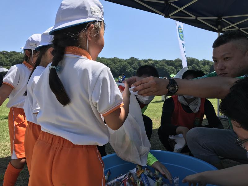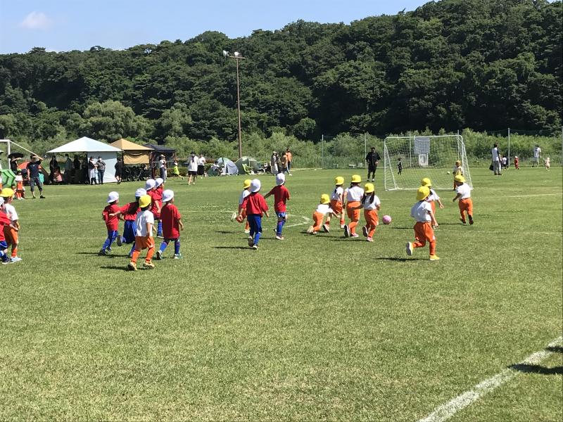 当日は、地域のサッカーチームから年長ブロックに6チーム、年中ブロックに4チーム、合計約80人の園児が参加。初夏の日差しの中、元気いっぱいにグラウンドを駆け回り、総当たり戦を繰り広げた。試合終了後には表彰式が行われ、参加者全員に記念メダルを授与したほか、景品として掴み取り形式でお菓子をプレゼントした。