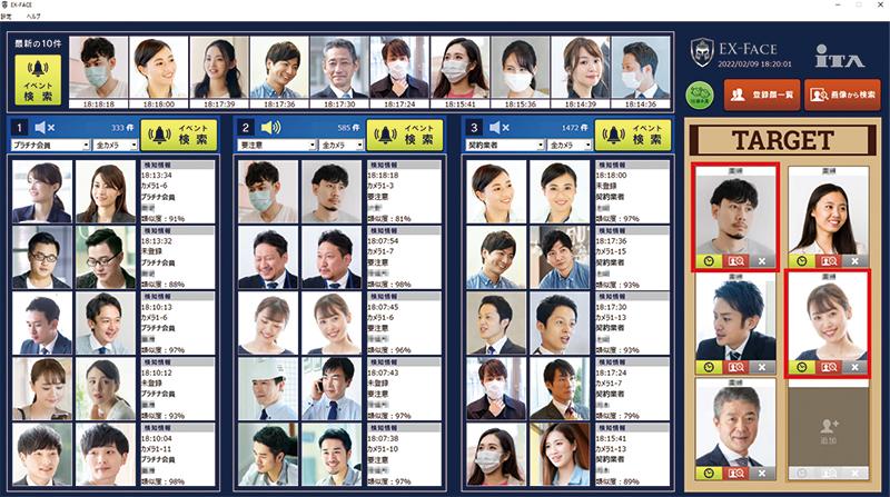 桒村 顔データを事前に用意できれば、自動検出は可能です。例えば過去にトラブルを起こした人物や入店をお断りしている人物の顔データを登録しておけば、来店を検出した瞬間にアラートを自動発報します。発報先は事務所内のスピーカーやインカム。メールにも通知できます。前日に忘れ物をされた常連様や自己・家族申告プログラムで入店制限を課されている方、警察から協力要請された被疑者にも応用できます。顔データは慎重に扱うべきものですが、系列グループ店で共有することも有効でしょう。