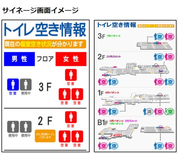 オフィスビルや商業施設で、エリアごとの混在状況を可視化しデジタルサイネージやスマホで確認できるサービスが導入されている。これを実現しているのがIoTセンサーだ。多様な種類の小型センサーや通信機器を製造するNTC(東京都)は、「空いてるチェッカー」「密メーター」という名称でソリューションを提供しており、首都圏では某有力パチンコホールがこれを導入している。この店舗では遊技客は自席にいながらスマホでトイレ個室や喫煙所、休憩室の空き状況・混雑状況を確認できる。また、同じ情報が通路に置かれたデジタルサイネージにも表示されている。