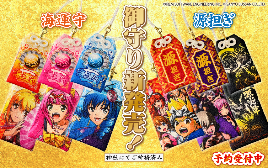 「海物語」と「大工の源さん」の新グッズシリーズ第1弾である本製品は、幸運を呼び込む海運(かいうん)と源担ぎ(げんかつぎ)の御守り風ストラップ。神社でご祈祷済みの本製品には、両コンテンツの人気キャラクターたちが描かれている。