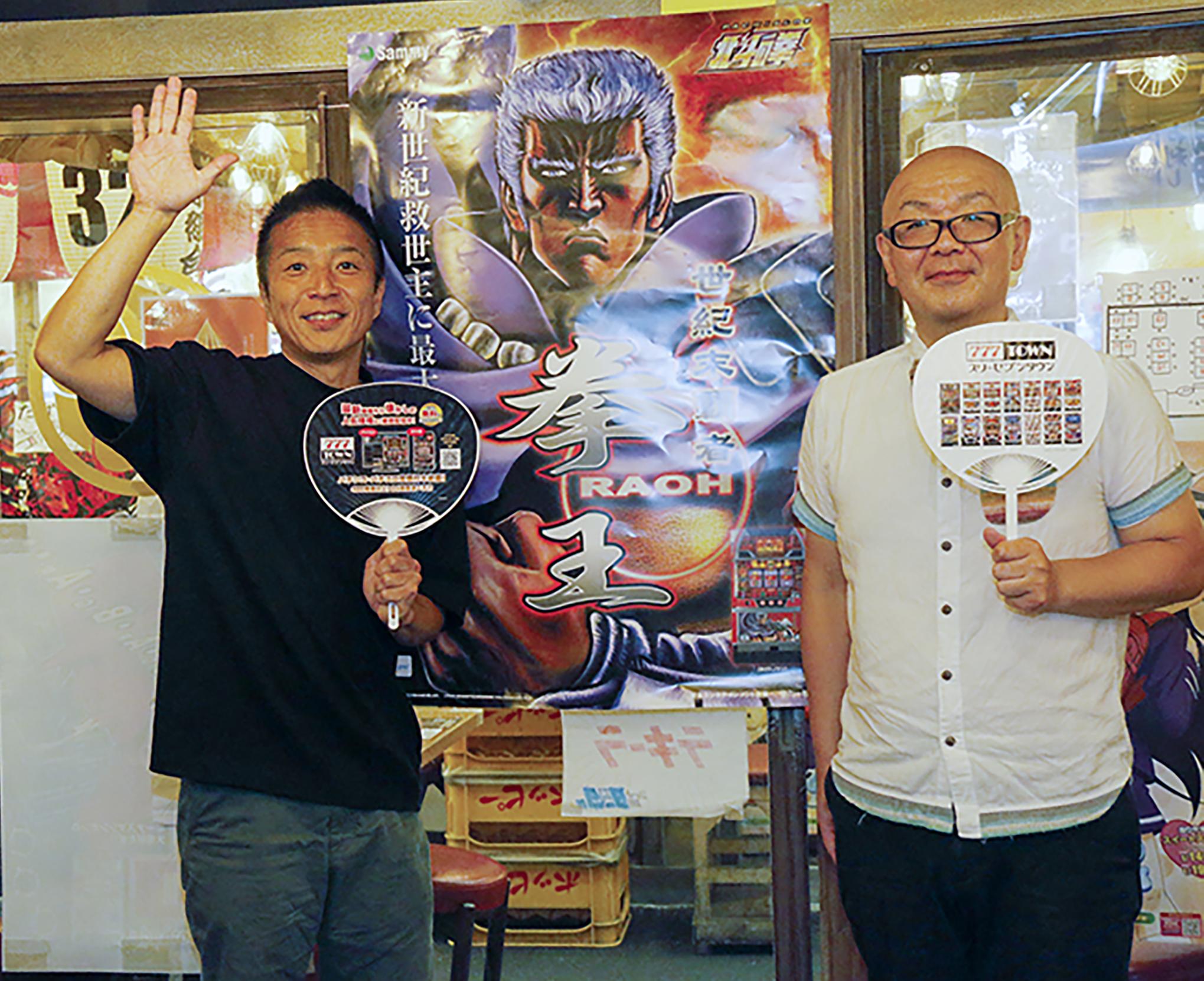 サミーネットワークスは8月3日から8月16日までの間、食材別専門店と地方別ご当地酒場全11店舗が集結した『有楽町産直横丁』で、パソコン向けのパチンコ・パチスロゲームアプリ『777TOWN.net』17周年記念イベントを開催している。それを記念して、8月4日に同店でパチンコ・パチスロを愛するお笑いコンビ・Hi-Hiの二人を招いたイベント体験会を実施した。
