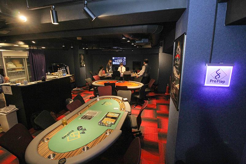 パチンコホール13店舗のほか、総合エンタテインメント事業を展開するシティコミュニケーションズ(横浜市)が8月15日、横浜駅西口から徒歩約2分の自社ビルにポーカールーム「PreFlop YOKOHAMA」をオープンした。店内ではテキサスホールデムと飲食が楽しめる。