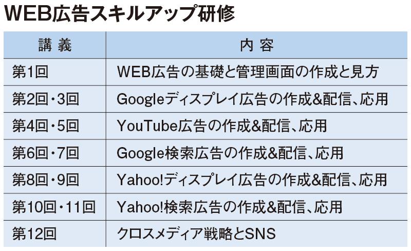 おもな受講対象は実際の運用を担当することになる主任レベルを想定しているが、広告運用の理解のために、店長・副店長層の参加も推奨している。標準的な研修期間は1年(全12回)。
