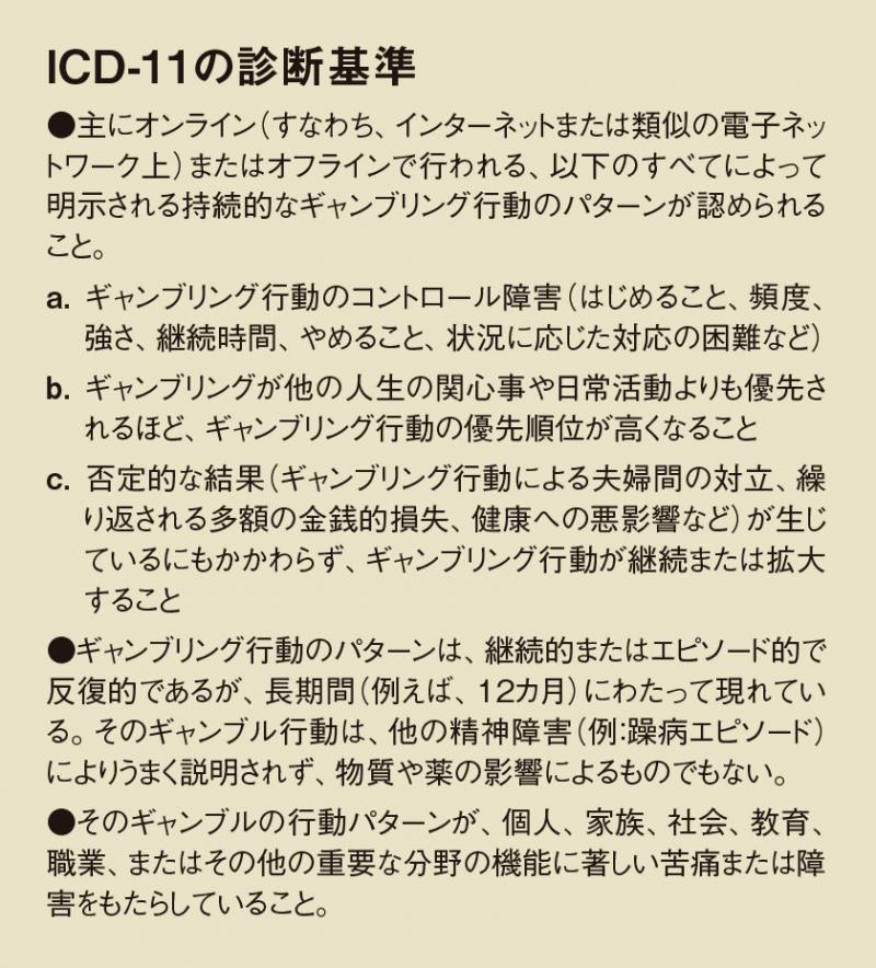 ──WHOはギャンブリング行動に関して、それを疾病と認める基準を変更したわけではなく、もともとかなり厳格だったということですか。