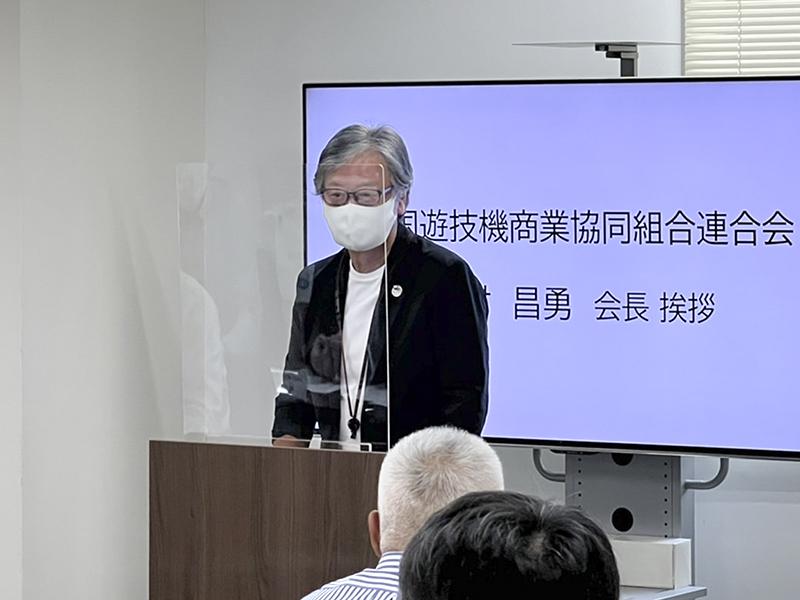 続いて遊技機取扱技能研修センターの井上幸彦代表理事も挨拶。「みなさまはここで学んだことを各地区遊商で活躍している遊技機取扱主任者の方々に指導するという重責を担っている。これは全国で同じスキルをもって遊技機の点検作業に従事してほしいとしている、行政から全商協への要請に応えるもの。全国の現場で働く主任者の方々の技術向上と業界として必要とされる人材育成のため、これからもご尽力をいただきたい」と述べた。