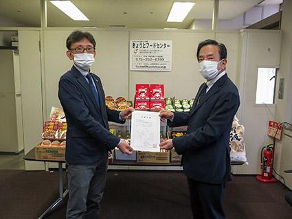 京都府内の景品取扱業者で構成される都福祉事業協会は11月16日、府内の子ども食堂に約67万円相当分の食品を寄贈。食料品の取り扱いを行う団体・京都府遊技業景品納入業者会とタイアップして行った。