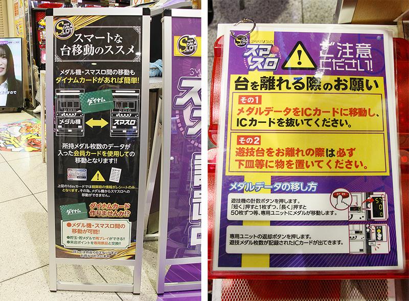 同店ではスマスロ導入の事前準備として、同社作成のスマスロロゴが入った販促物の展開、SNSでの告知、そしてスタッフの研修も行った。