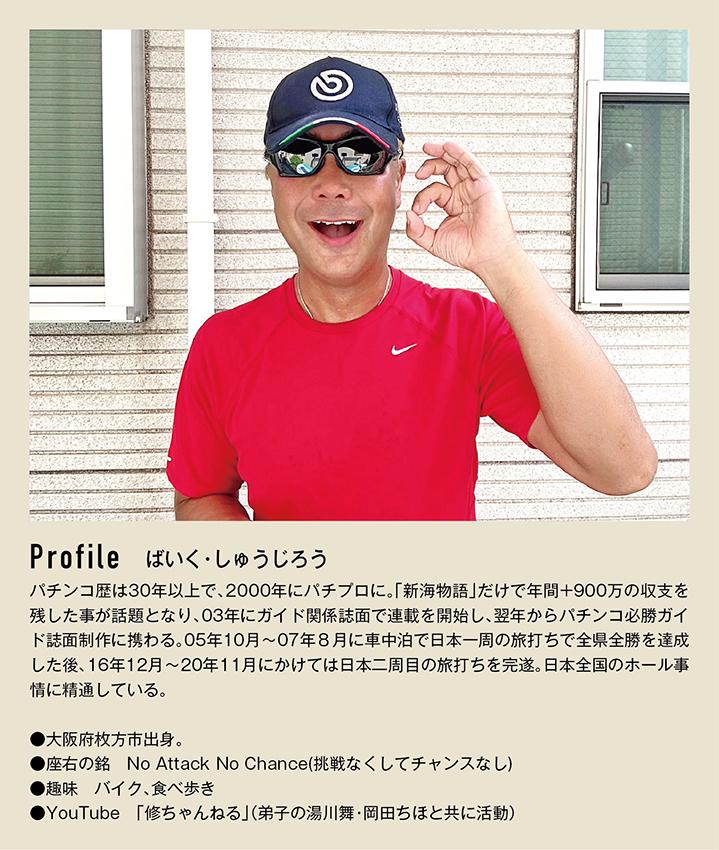 バイク修次郎のYouTubeチャンネル「パチンコ修ちゃんねる」はこちら