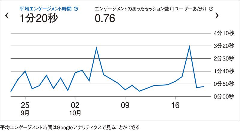 次に、ページ滞在時間の正しい計測方法について解説します。ページ滞在時間を計測できるデータは主に2つ。1つは平均セッション時間、もう1つは平均エンゲージメント時間です。