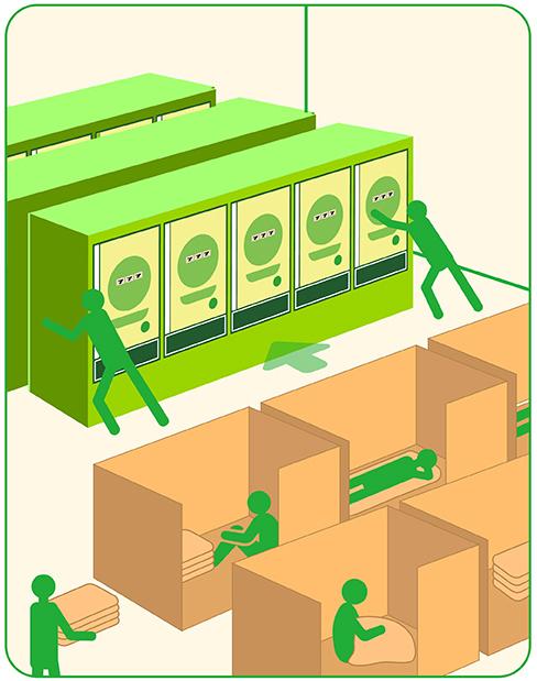 新・事業ロゴと併せて、補給装置がなくても遊技可能なスマート遊技機の特性を活かした新しい島設備『FLEXIBLE(フレキシブル)システム』『EXCHANGE(エクスチェンジ)システム』を発表。これらは、パチンコ島としてもパチスロ島としても使用できる。『FLEXIBLEシステム』は、島そのものの移動を実現。営業戦略に合わせた、店内空間の自由な変更を可能にした。設置場所も自由なので、創出できる遊技空間の幅も拡大している。大がかりな工事をせずに導入できる点も大きな特徴だ。
