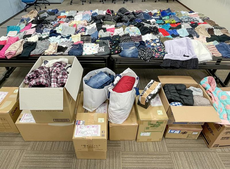 ユーコーラッキーグループが子ども服734点を寄贈