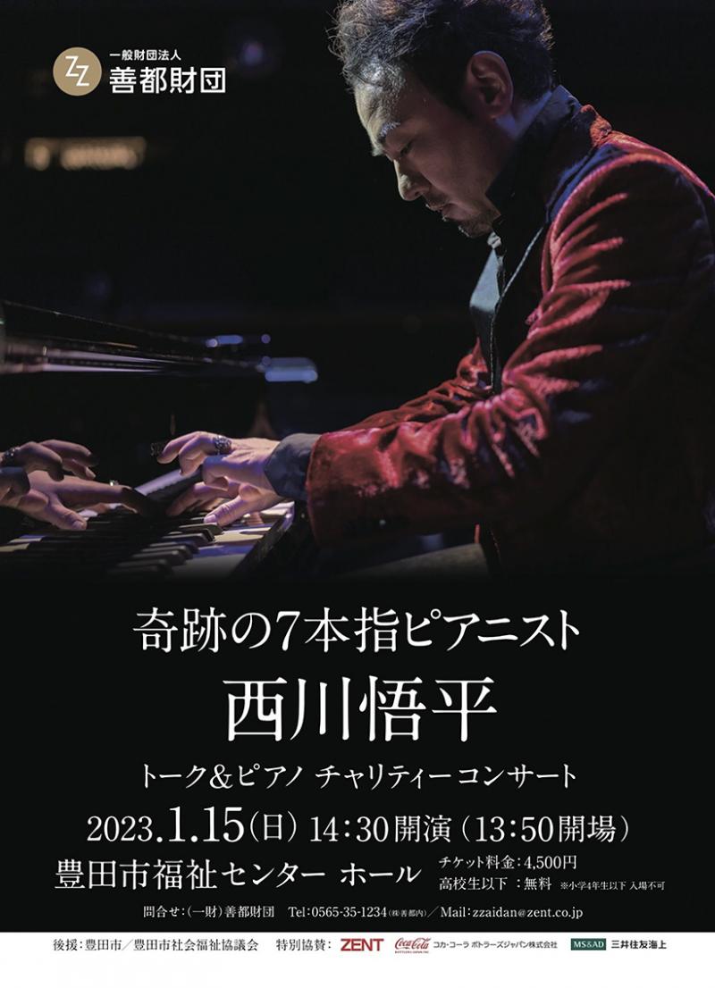 愛知県を中心にホール24店舗を運営する善都(愛知県豊田市)が支援する善都財団が1月15日、豊田市福祉センターで「奇跡の7本指ピアニスト 西川悟平 トーク&ピアノチャリティーコンサート」を開催した。