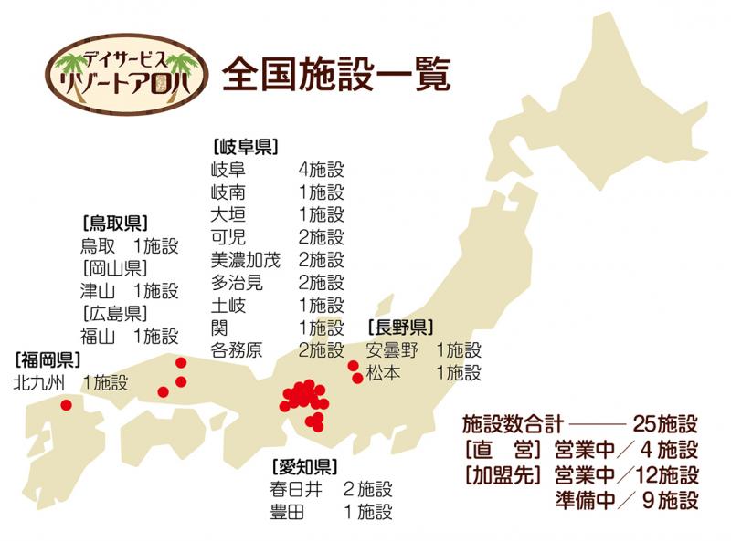 『リゾートアロハ』は、岐阜県を中心に全国に16施設を展開、9施設が開設準備中で計25施設になる予定だ。最近は、追加開設するケースも多く、3施設目の開設を決めたオーナーもいる。