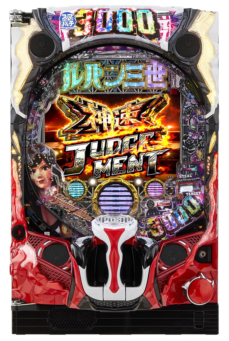 「神速GOLDEN TIME」後(残保留の消化を含む)は、スマパチならでは引き戻しチャンスゾーンのCタイム「神速JUDGEMENT」に移行。左打ち1回転でのみ発生するもので、ここでc時短に当選して約20%の時短1329回を得られると、「神速GOLDEN TIME」に復帰する。一連のトータル継続率は約85%だ。