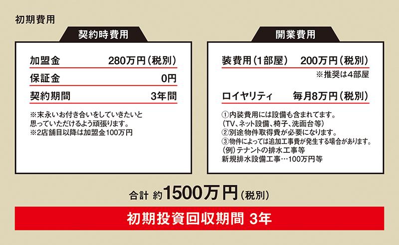 運営面のサポートも手厚い。顧客の管理や接客、清掃は、アパート・マンションを常時600部屋管理するナガイデザインの管理ノウハウをベースに、基本一人で店舗運営できるシステムを構築。初回研修費は0円で開業後の不安も払しょくできる。