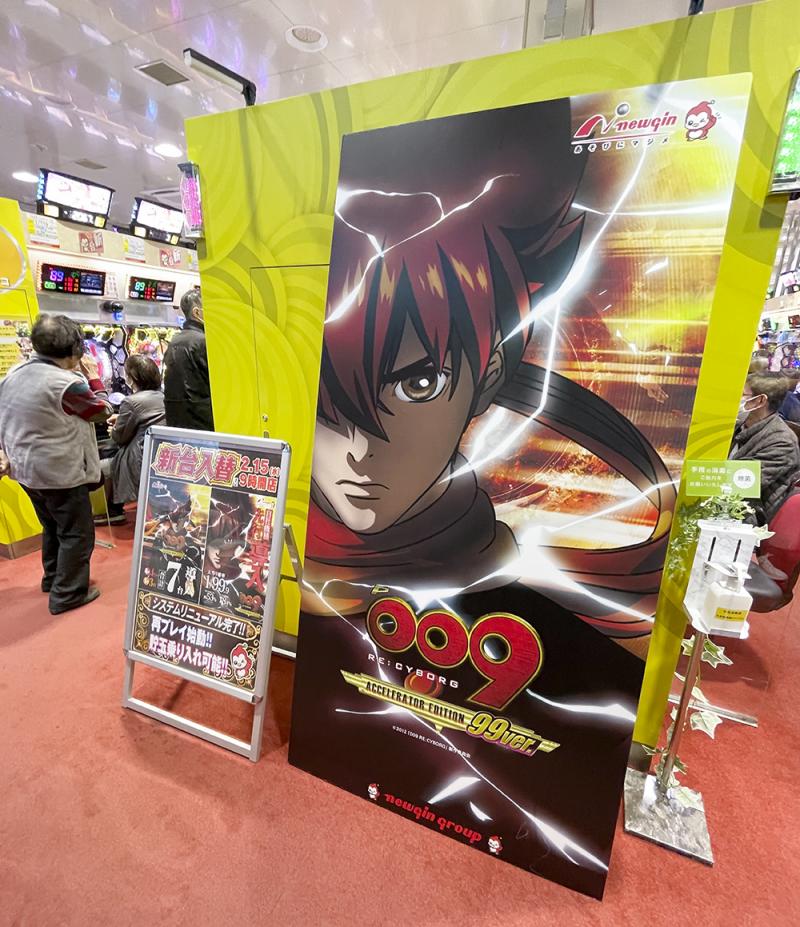 ニューギングループの直営店『パーラーニューギン』(名古屋市中川区)は2月14日、パチンコ新機種『P009 RE:CYBORG ACCELERATOR EDITION 99ver.』を先行導入した。設置台数は4円パチンコに4台、1円パチンコに3台。甘デジで実績のあるサイボーグ009シリーズとあって、当日は午後6時からの部分オープンを前に熱心なファンが列を作った。