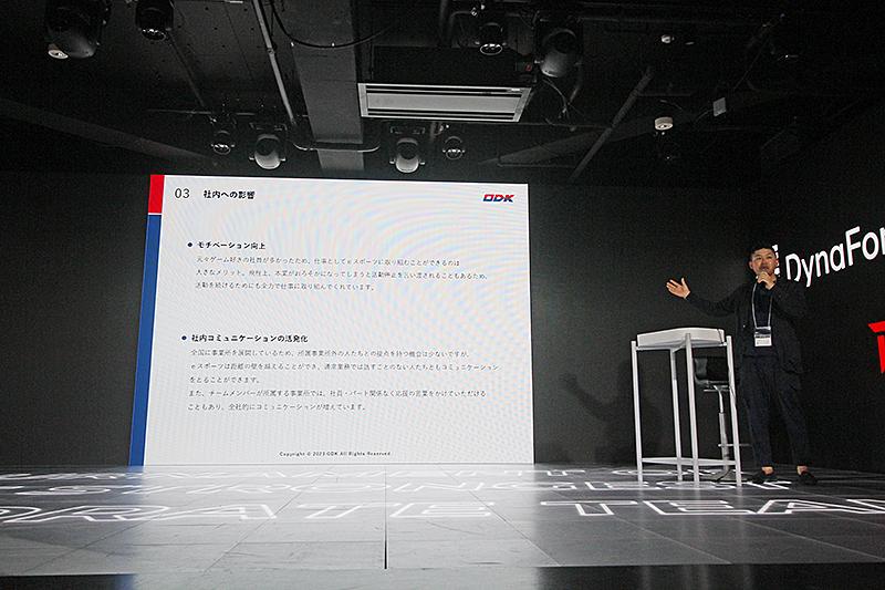 第3部は企業eスポーツ部を設立した企業と群馬県の登壇プレゼン。ケーブルテレビ、高速インターネット接続などを提供するJCOM(東京都千代田区)は部設立に至るまでの経緯・社内での取り組み、群馬県eスポーツ・新コンテンツ創出課課長の齊藤義之氏は「eスポーツ×地域創生」をテーマにトークした。