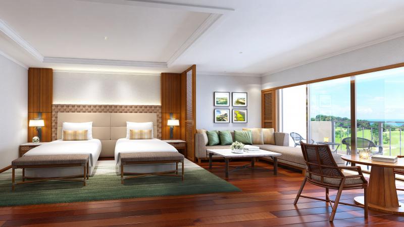 青木功プロが監修した「PGMゴルフリゾート沖縄」(沖縄県国頭郡)に併設される同ホテルは、約4万7000平方メートルの敷地に建つ。地上10階、地下1階建てのホテル棟には全200室の客室のほか、オールデイダイニング、バー、チャペル、エステルーム、プール、ゴルフアカデミー、フィットネスジムなどを完備する。