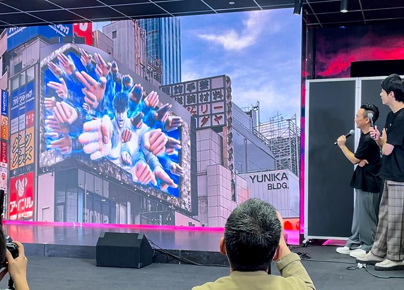 CMは屋外でも展開する。3D描写で知られる東京・新宿の大型街頭ビジョン「クロス新宿ビジョン」では、ケンシロウの拳が画面を突き破るように繰り出され、かまいたちが「20年の時を経て、初代北斗復活!」とPRする。屋外CMの上映期間は3月31日から4月13日まで。