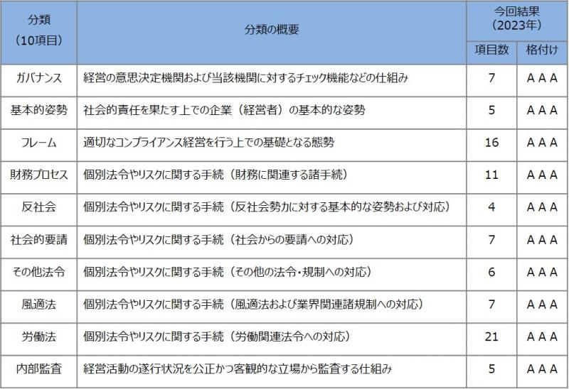 本年度の評価調査では、ダイナム本部ビルで部門責任者や担当者にヒアリング、規定・マニュアル・帳票類の確認、くわえてPTBにより選出された2店舗への視察・ヒアリングなどが実施された。今回の調査は全ての項目で最高ランク「AAA」評価を獲得。前回調査(2020年)に続き、3回連続での最高評価になった。