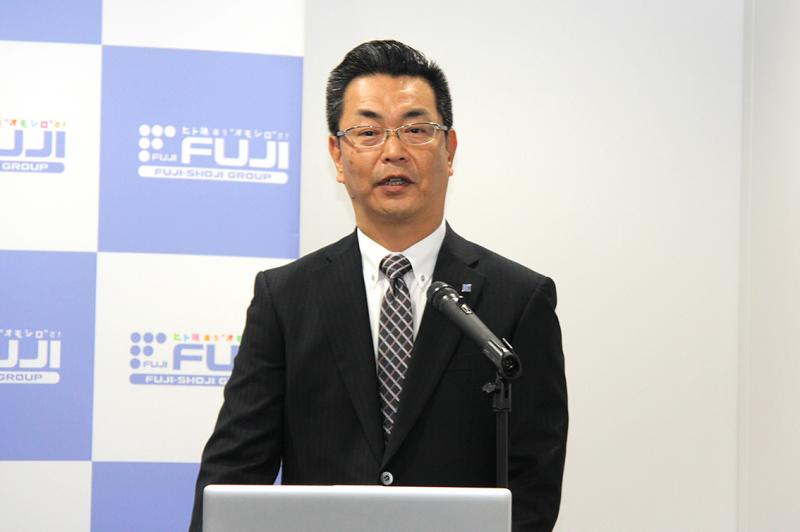 同機は、藤商事グループのスマートパチンコ第一弾。常務執行役員・営業本部 中村敏幸本部長は、冒頭の挨拶でスマパチの位置づけについて次のように語った。