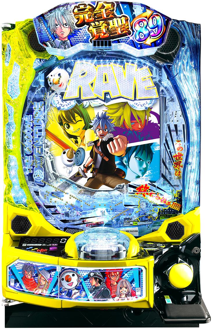 『スマパチ RAVE 覚聖ループ』は、大当たり確率1/299の1種2種混合タイプ。大きな特徴は、3種類の継続モードからなる「覚聖BATTLE」とスマパチONLY ONE機能であるCタイム「覚聖エーテリオンチャンス」が織りなす「覚聖ループ」だ。