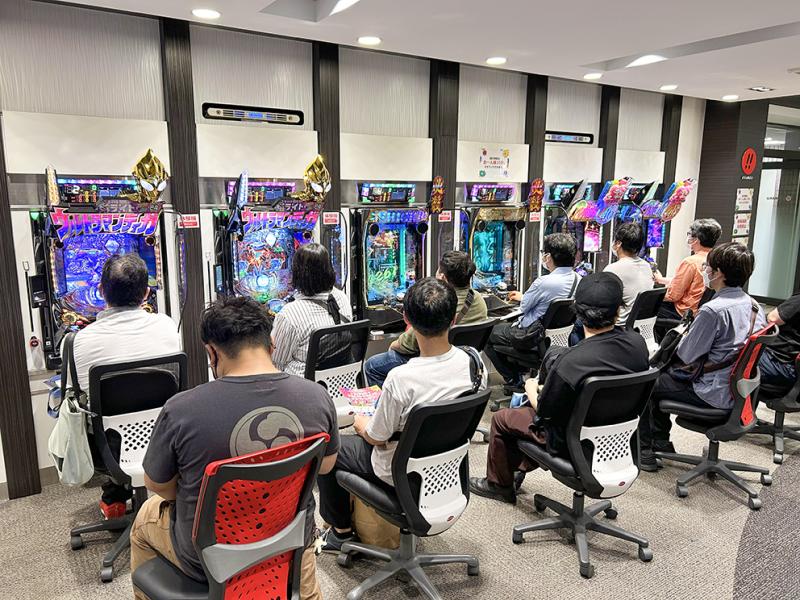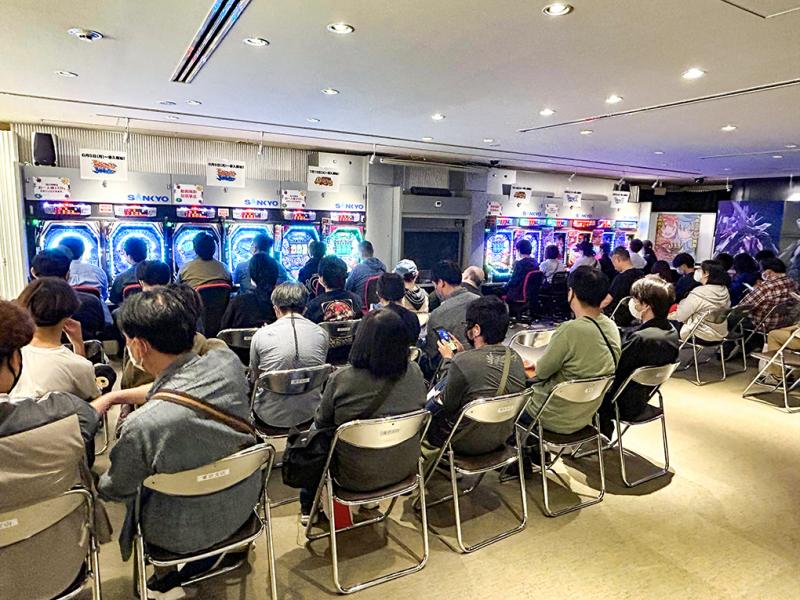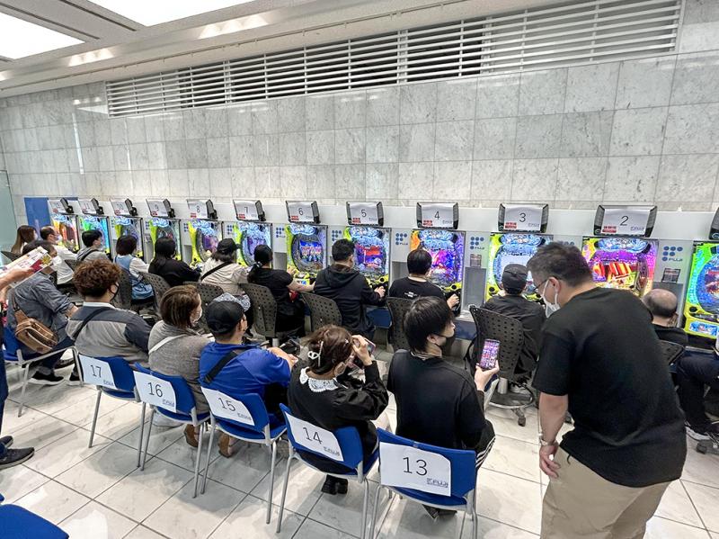 すでにホールで稼働中のスマパチに加えて、まだ導入前の話題のライトタイプ機種を設置。ライトタイプながら出玉にも期待できるゲーム性に期待する声やコンテンツファンという参加者も多かった。