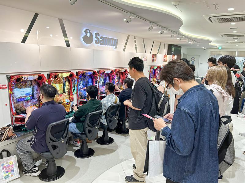 このイベントは東上野エリアに点在するパチンコメーカーのショールームで、一般ファンが人気機種からまだ導入前の最新機種までを試打できるイベント。この日と6月4日(日)の2日にわたって開催される。参加者は各ショールームを巡り、スタンプを集めれば、豪華賞品が当たる抽選会にも参加可能。この日参加したメーカーはKYORAKU、サミー、SANKYO、藤商事、メ―シーの5社。