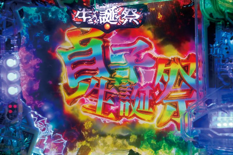 役物突破後は、RUSH「貞子生誕祭」に100%突入。至福のときが幕を開ける。RUSHの継続率は、約97%と高水準だ。テンポの良さも特徴の一つ。大当たり終了後から図柄変動開始前、図柄揃い後から次の大当たり開始までのインターバルをカットしたうえで、即当たり演出を搭載。そのためシームレスに大当たりが続き、次々と出玉が払い出されるのだ。実際に試打してみたが、継続率の高さゆえ大当たりが何度も続いていくうえ、進行速度が速いため、冗長さのない、爽快感あるRUSHだという印象を受けた。