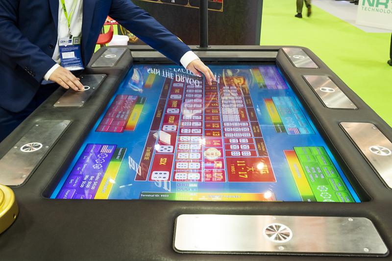 ETGで気になったのは特にアジア地域のゲームセンターでもカジノでも人気の高い、大型画面のテーブル型フィッシングゲームを見かけなかったことだ。その代わりに、7人が同時プレイできる、大型タッチスクリーンのテーブル型シックボー(大小)を初めて見た。これはスウェーデンのTangiamo Touch technologyで、プレイヤーはタッチスクリーン上にチップを賭ける際にもう一方の手の指を手元の金属製ボタンに触れる。機器は、感知した静電気によって各プレイヤーを識別する。