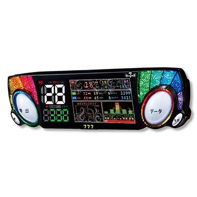 表示画面は、プリセットレイアウト、背景、フォント、フレーム、エフェクトから組み合わせて、遊技台のイメージに合わせた表示が可能。ランプメーカー(画像作成ツール)で作成したホールPVや広告データなどを自由に配置できるオリジナル表示機能も搭載し、表示画面の組み合わせは無限に広がる。